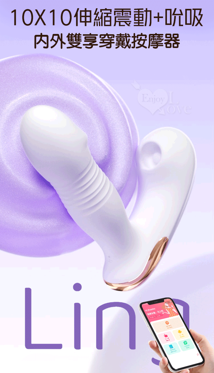 ROSELEX 勞樂斯 ‧ 靈感 10X10伸縮震動+吮吸 內外雙享多功能按摩器 - 可手機APP遙控﹝具兩種操控模式﹞