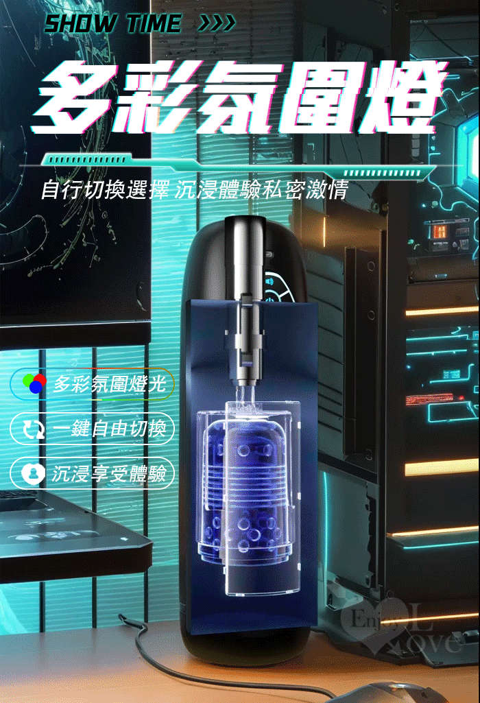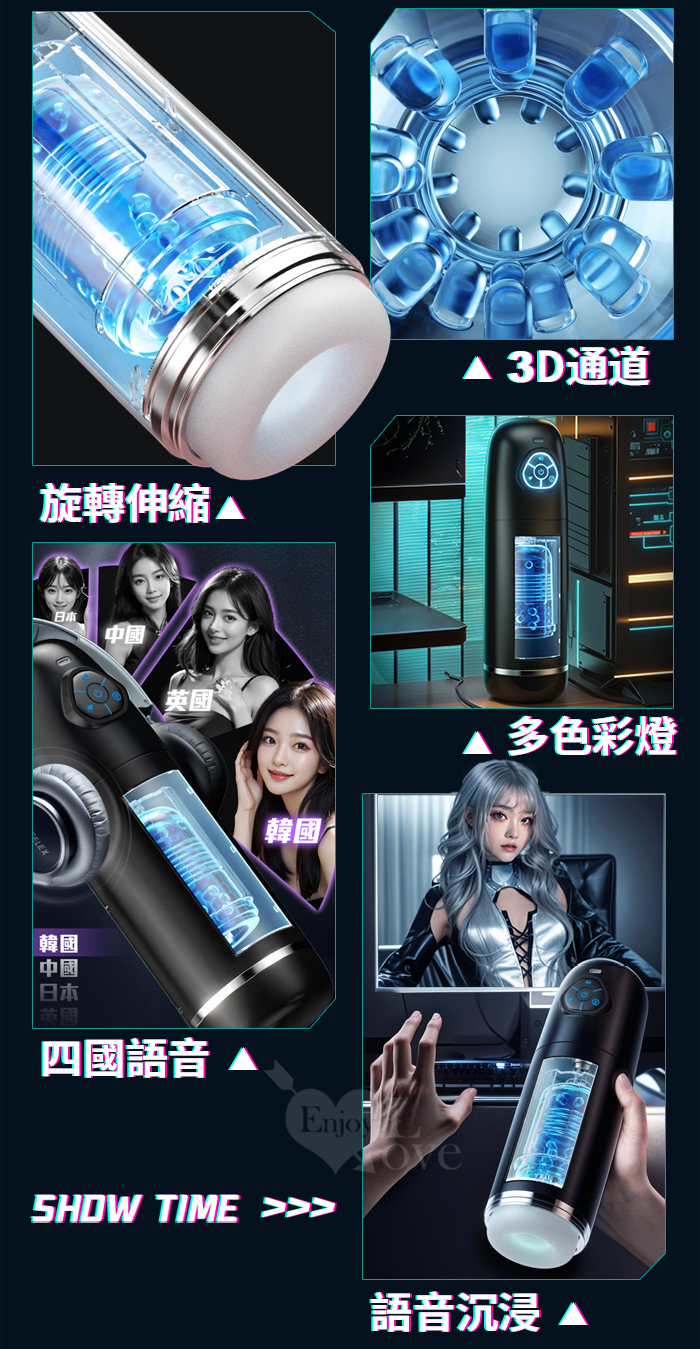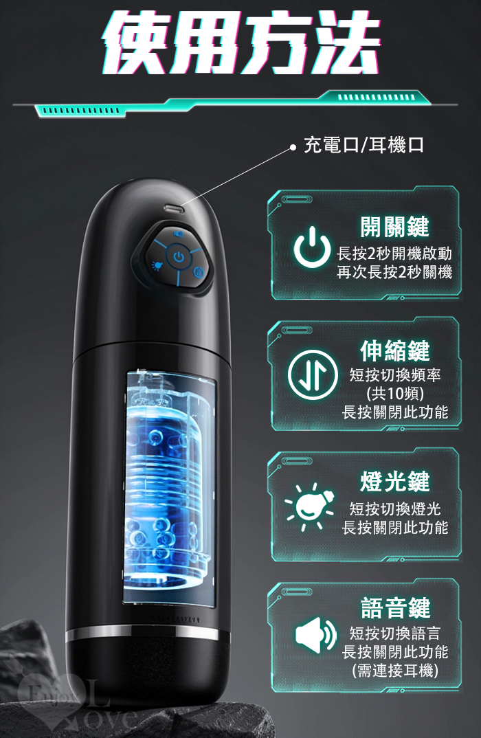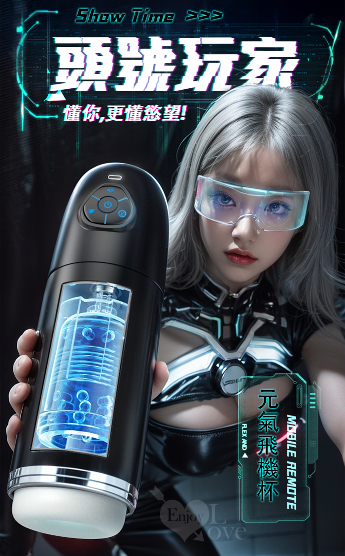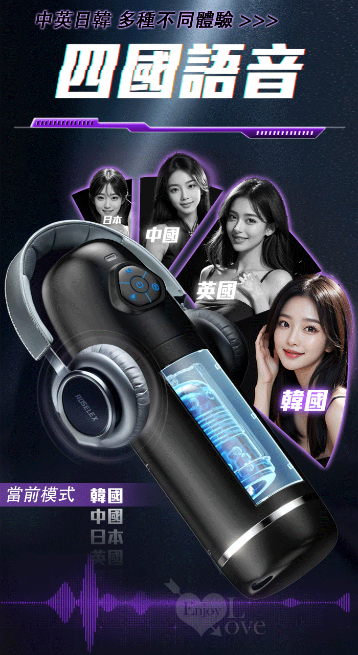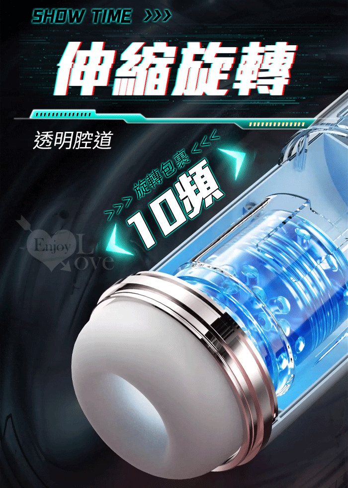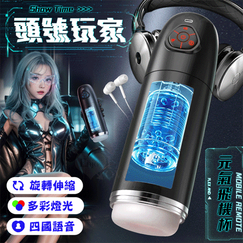 ROSELEX勞樂斯.頭號玩家 10頻伸縮旋轉透明腔道元氣飛機杯﹝四國語音呻吟+多彩氛圍燈+耳機﹞