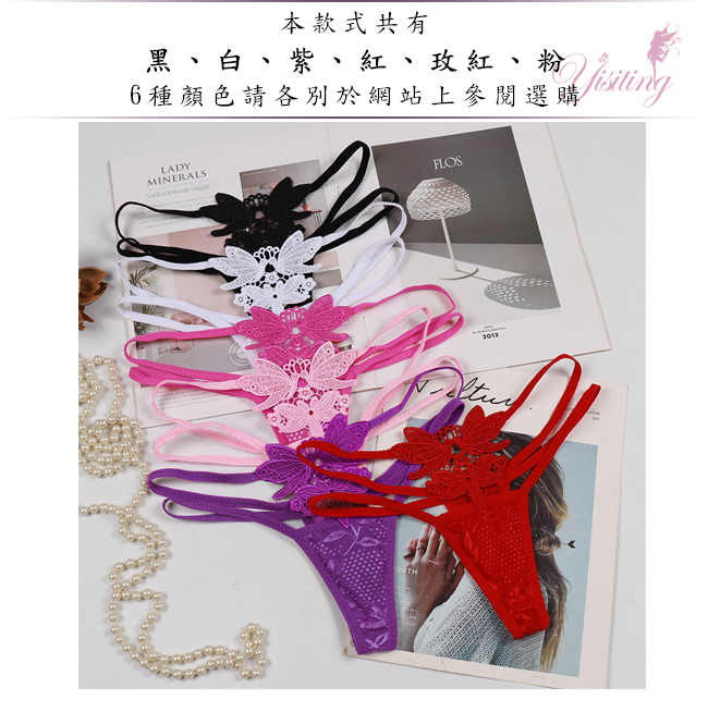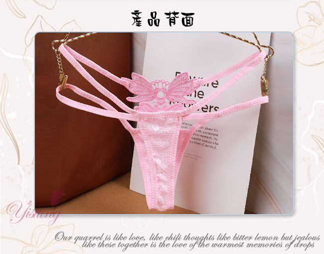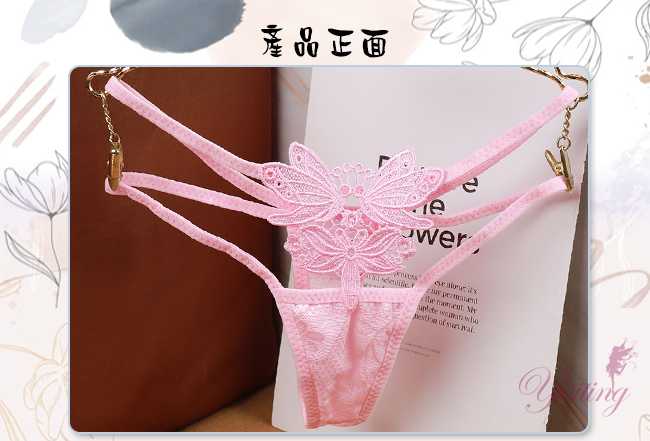 甜蜜舞動!蝴蝶雙飛彈力細帶花卉網紗美臀T字褲﹝粉﹞