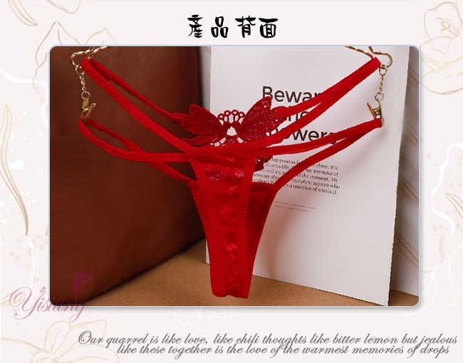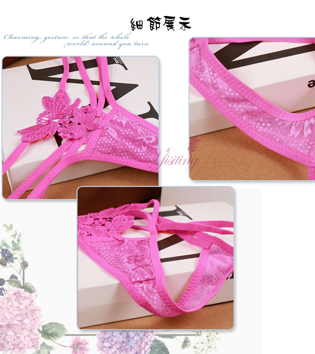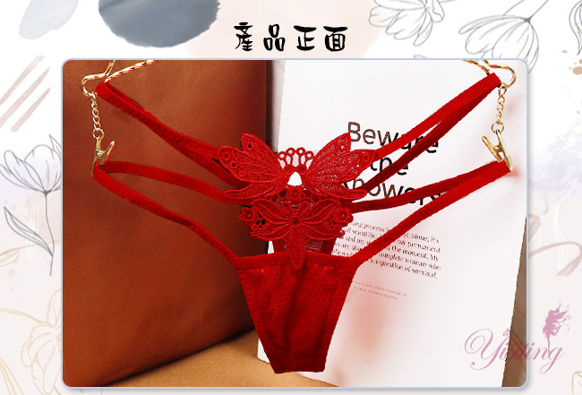 甜蜜舞動!蝴蝶雙飛彈力細帶花卉網紗美臀T字褲﹝紅﹞