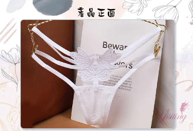甜蜜舞動!蝴蝶雙飛彈力細帶花卉網紗美臀T字褲﹝白﹞