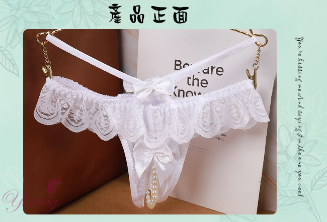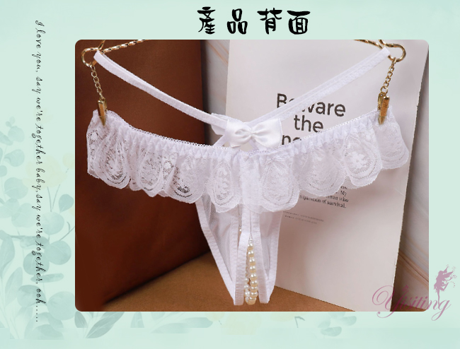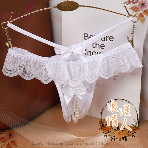 浪漫情人!輕膚柔紗拼接蕾絲迷人珍珠開襠丁字褲﹝白﹞