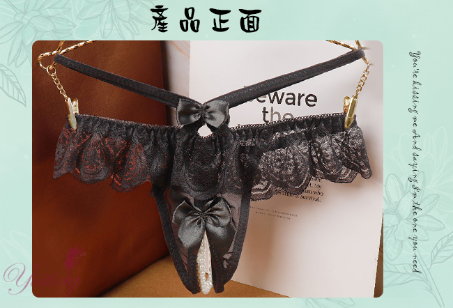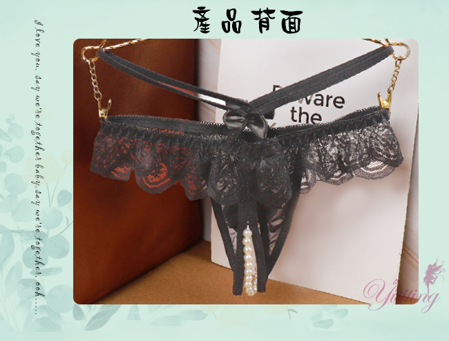 浪漫情人!輕膚柔紗拼接蕾絲迷人珍珠開襠丁字褲﹝黑﹞