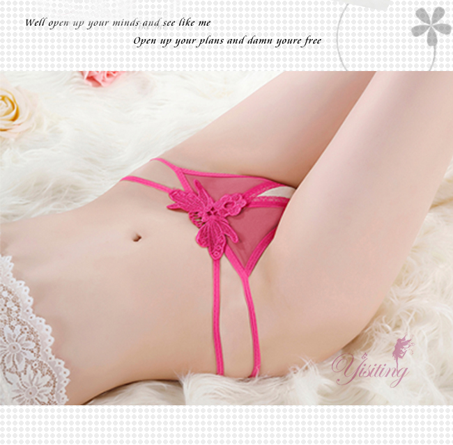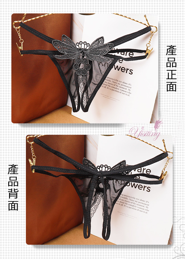 迷情綻放!雙彈力帶蝴蝶刺繡誘人露臀開襠丁字褲﹝黑﹞