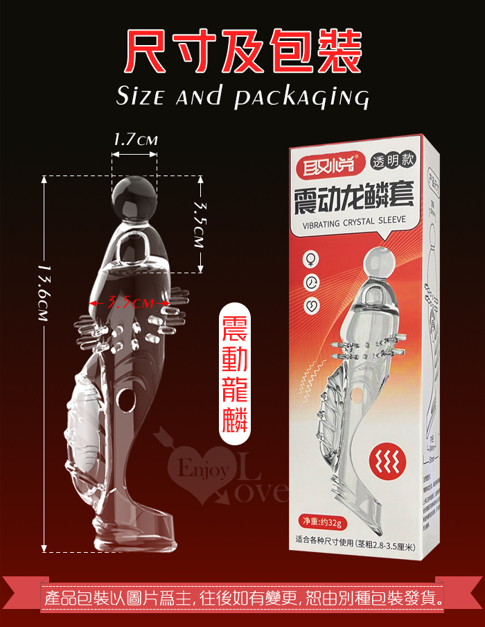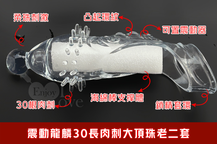 取悅 ‧ 震動龍麟30長肉刺大頂珠老二套~鏤空/凸點/環紋/增長增粗物理持久隱身加強套﹝透明色﹞