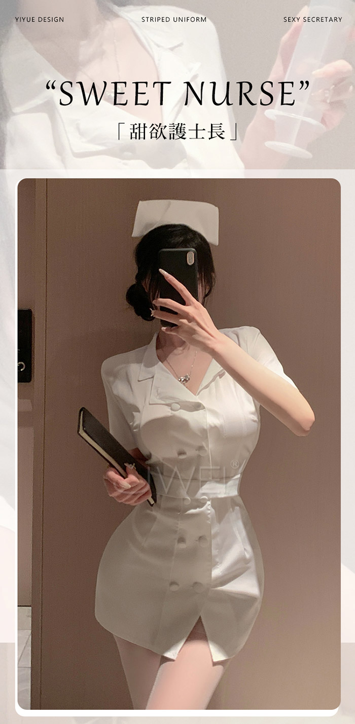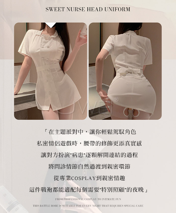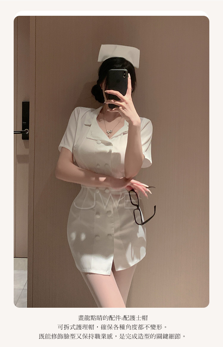 首頁>護欲天使.清純白衣護士套裝【衣服+帽子+腰帶+T褲】