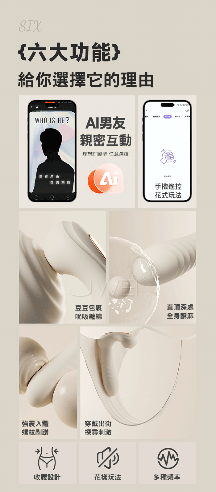 伊麗絲跳蛋,不一樣的穿戴情趣,AI男友親密互動!多樣人設滿足不同幻想~ 吮吸+震動+伸縮 三合一多功能刺激,全身酥爽!無死角貼合密道穩穩不掉落 智能升溫 告別冰冷,暖暖得更貼心,享受更溫暖的愛~ ■尺寸:大小詳如圖片標示 ■材質:矽膠+ABS ■供電:針孔充電 ■特色:10頻伸縮震動、APP智控、加溫