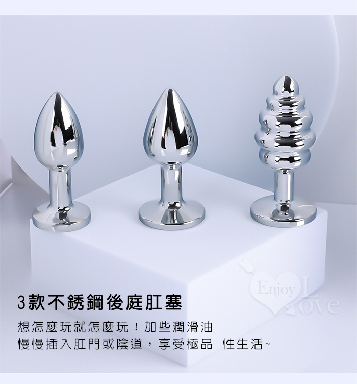 激性扮演狐狸精 ‧ 3款不銹鋼後庭肛塞+純黑尾巴毛套裝組﹝可組裝拆卸﹞