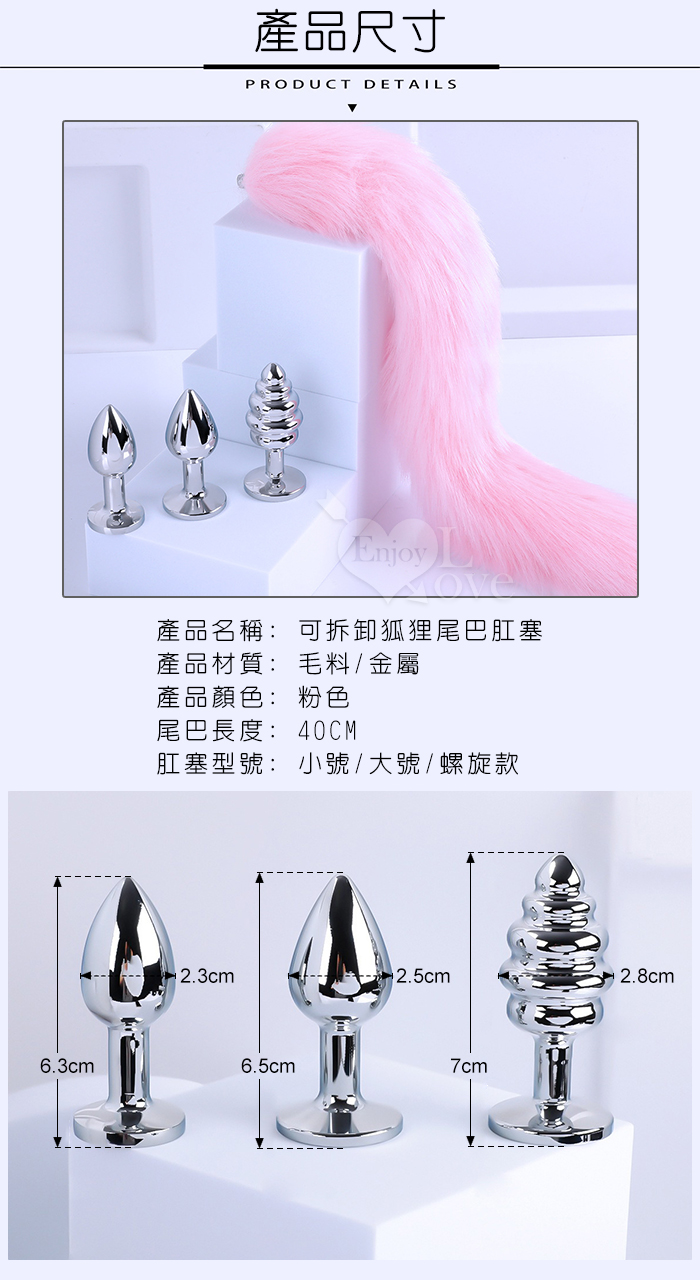 激性扮演狐狸精 ‧ 3款不銹鋼後庭肛塞+純粉尾巴毛套裝組﹝可組裝拆卸﹞