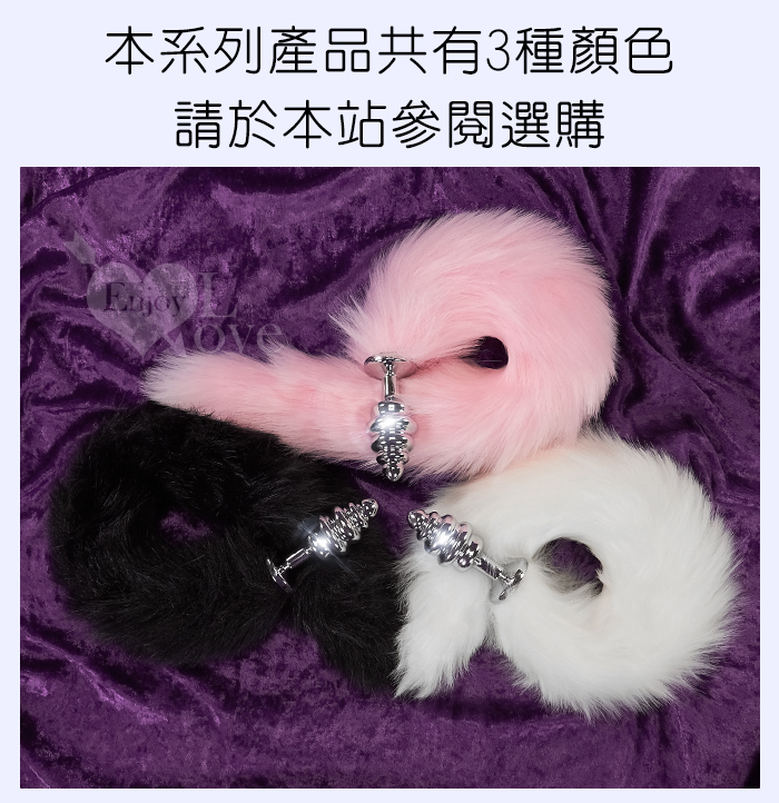 Sporting激性扮演遊戲 ‧ 人造毛尾巴+不銹鋼螺旋頭後庭肛塞 - 白﹝可組裝拆卸﹞