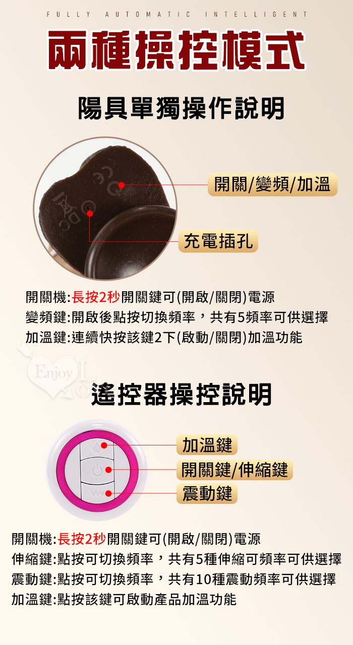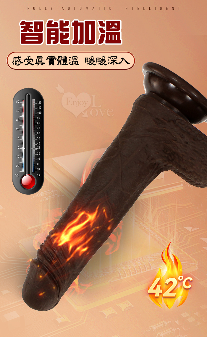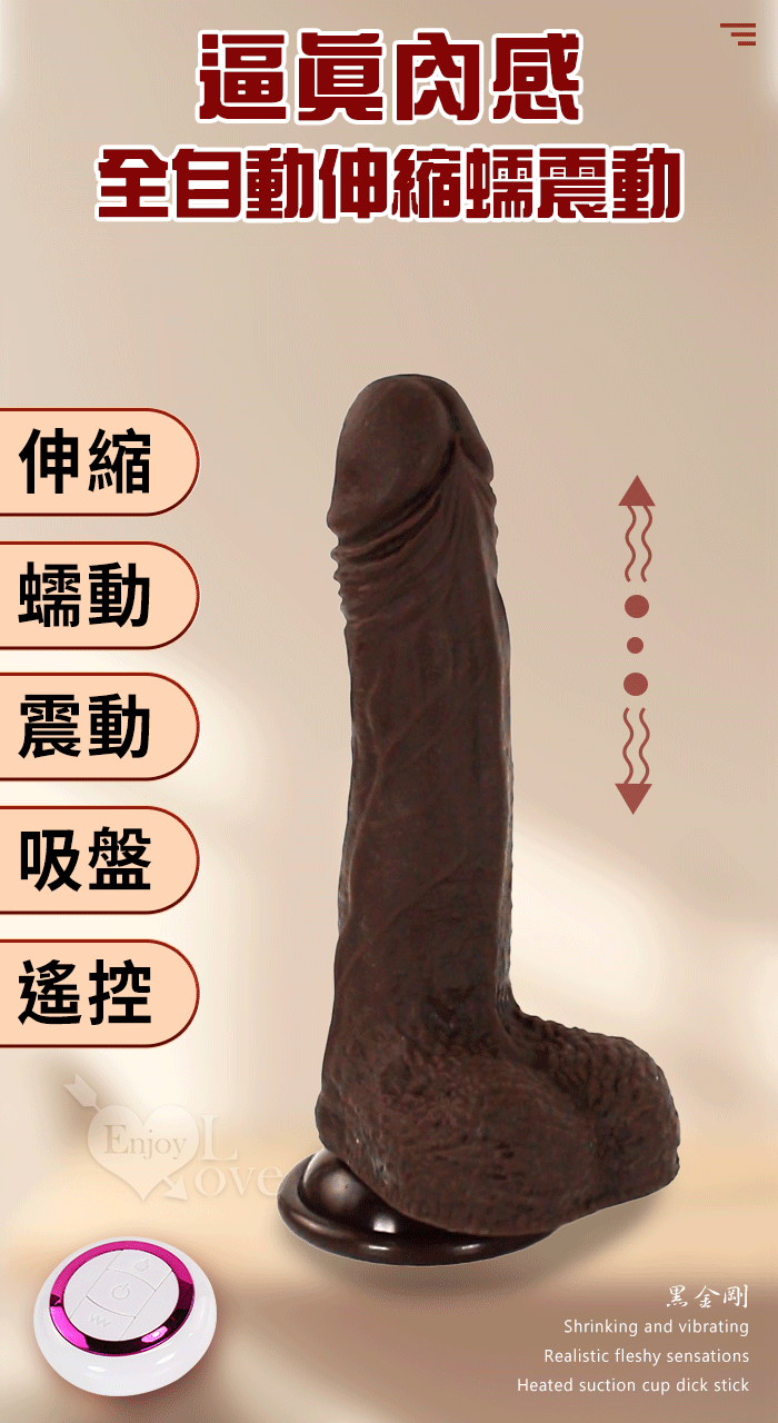 Enjoy Love ‧ 黑金剛 5x10頻伸縮蠕震動逼真肉感加溫吸盤老二棒﹝無線遙控/兩種操控模式﹞