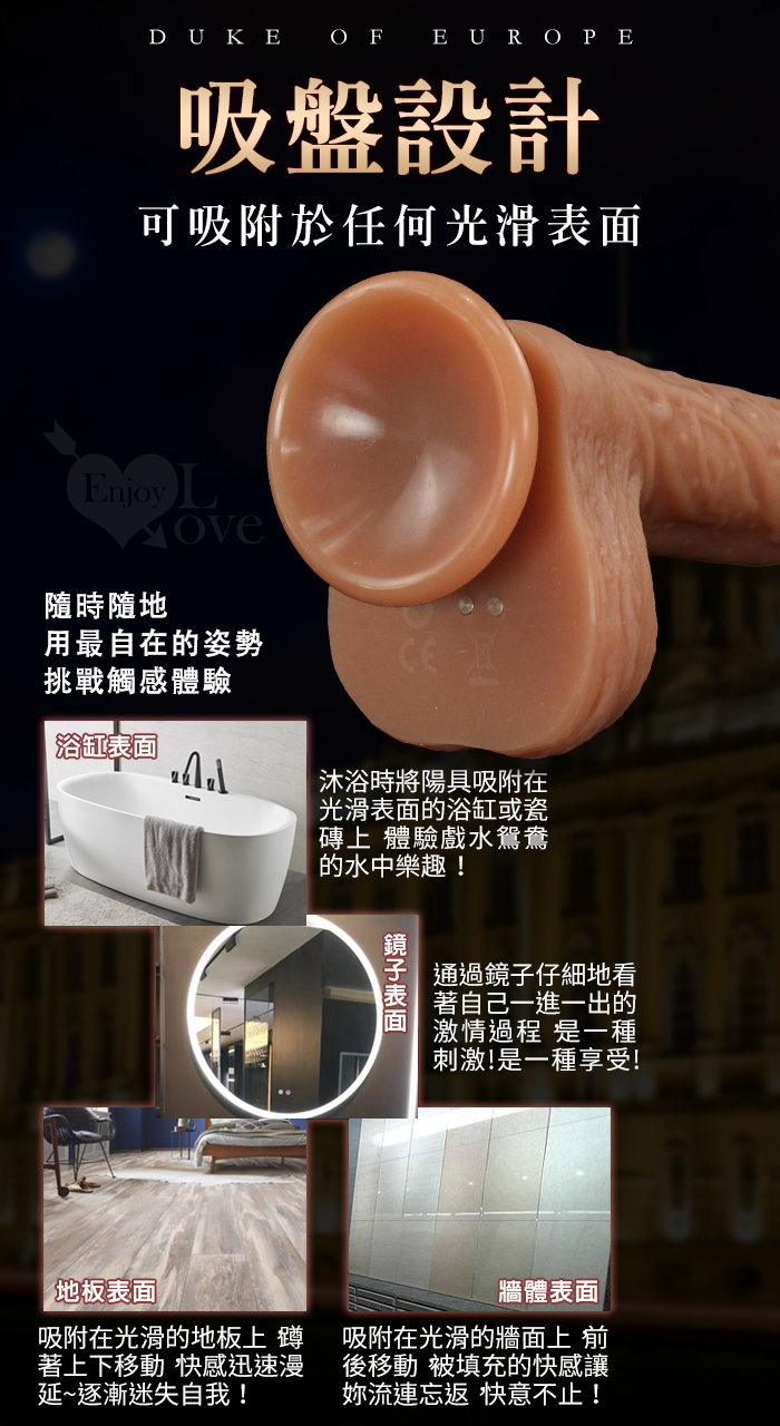 歐洲公爵 ‧ 無線遙控抽送撞擊 液態矽膠超肉感逼真大老二﹝強勁蠕動伸縮震動+加溫+吸盤+磁吸充電﹞