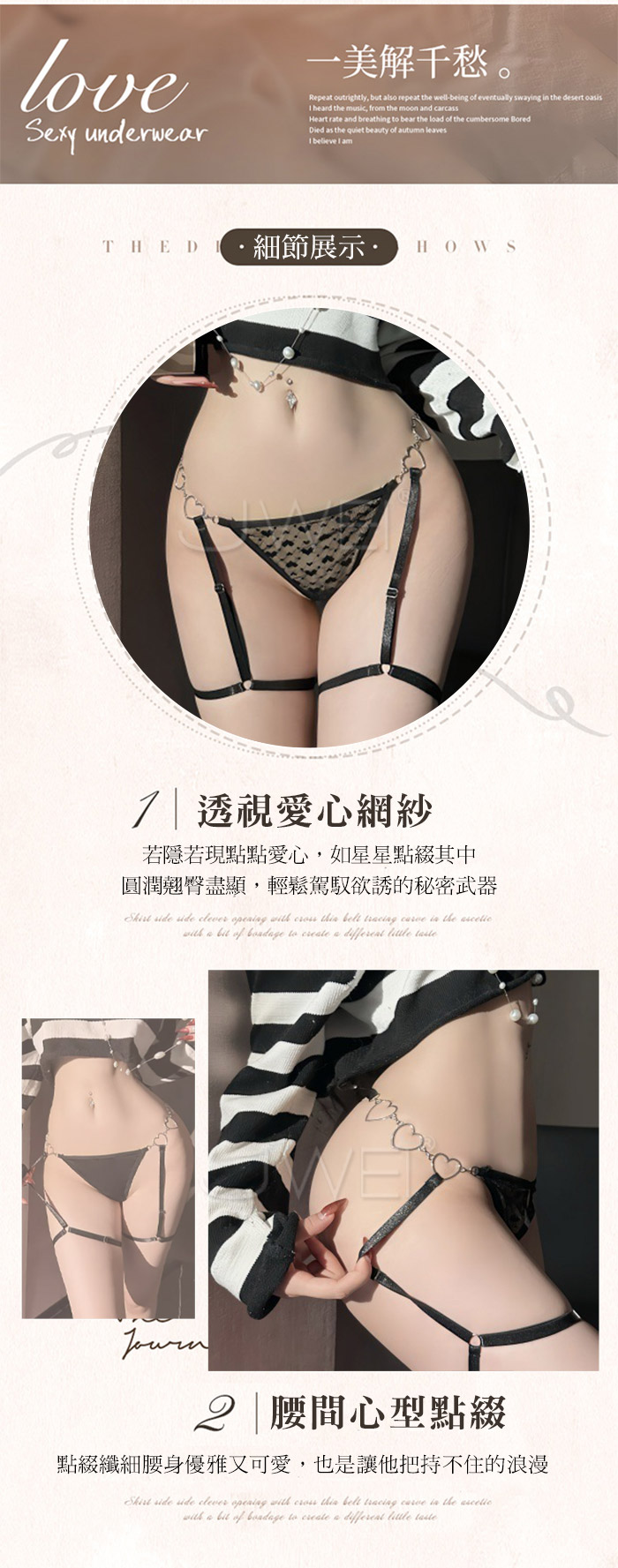 極夜誘惑.愛心鏈條綴腰吊帶低腰丁字褲【黑網愛心】