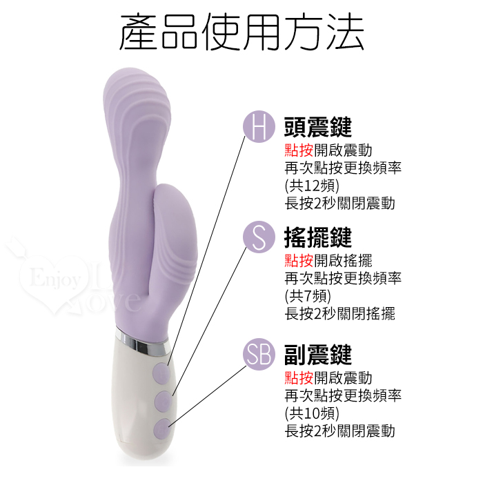 首頁>日本NPG.やわらかバイブ 肌感触 12頻頭震+7搖擺+10副震多功能柔和按摩棒-紫